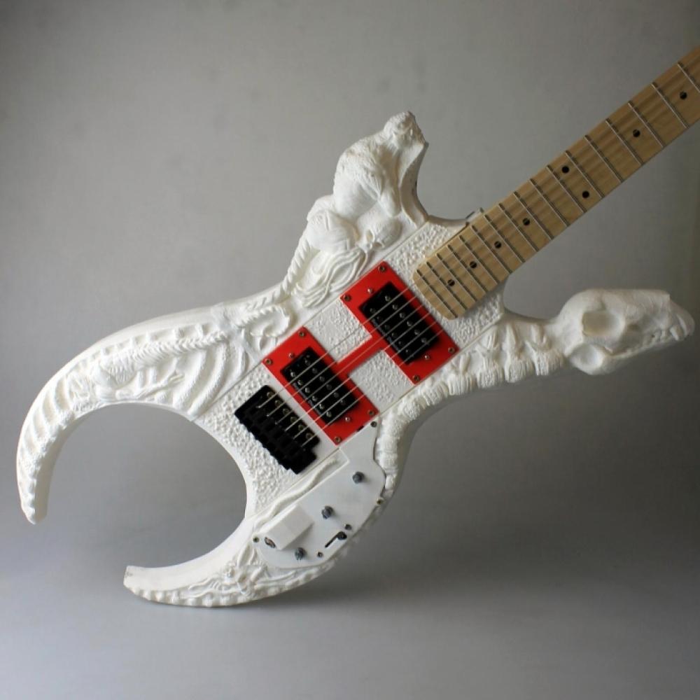 Прекрасный пример завораживающего внешнего вида, который стал реальностью благодаря технологиям 3D-печати. NecroMuse, по задумке авторов, должна напоминать человеческую грудную клетку и ребра и создавать ощущение инструмента, сделанного из костей. Такое ощущение и правда есть, несмотря на то, что корпус выполнен из полимеров.
