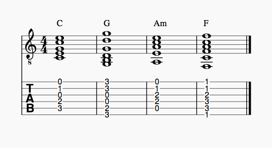 - IV-I-V-vi (F-C-G-Am в До мажоре);
