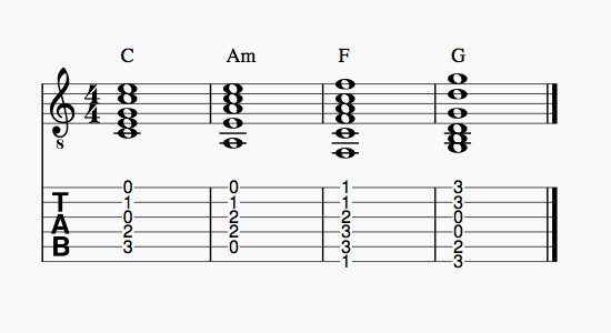 В таких шаблонах нет ничего плохого – успех песни зависит от многих факторов, поэтому использовать распространенные последовательности аккордов не зазорно. Давайте разберем самые популярные последовательности и посмотрим, в каких песнях они используются.