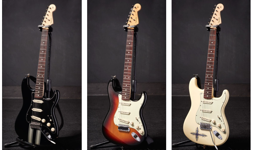 Три четверти концертного времени Кенни играет на черном именном страте. Это серийная модель самых ранних этапов производства. Полосы в духе гоночных автомобилей символизируют любовь Кенни к машинам. Обычно он мечется между увлечением гитарами и автомобилями, а тут ему удалось совместить обе страсти. Санберстовый страт - тоже подписная модель, но он отличается бриджем - там стоит Graph Tech Ghost со встроенной пьезой. Таким образом Кенни получает звучание акустики. Третий страт (белый) - опять таки сигнатурный и тоже серийный. Это любимый страт музыканта, а изображение креста - работа его жены. Все три гитары настроены по-разному. Черная - стандартный строй, санберст - дроп ре, белая - на полтона ниже.
