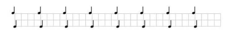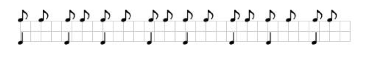 Но для получения грува не обязательно, чтобы все ноты были на равном временном расстоянии друг от друга, как у метронома, но обязательна стабильность и закономерность. Грув может быть таким, с постоянным смещением одной ноты: