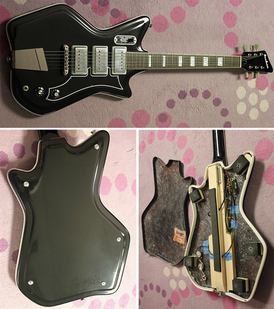 Инструмент, если сравнивать с привычными Gibson/Fender, оказался крайне непривычным. От пластикового логотипа, приклеенного к голове, и резиновой прокладки по боковой поверхности корпуса до крепления грифа на двух болтах и откручивающейся задней деки, которая соединена с верхней несколькими винтами. Самое большое опасение вызывали ручки регулировки (громкость и тембр каждого датчика).