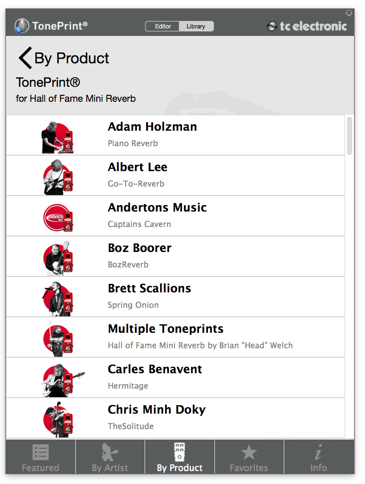 Конечно, сидеть в софте и крутить разные параметры - это забавно, но чтобы во всем разобраться и найти нужный результат нужно время и силы. Не у каждого хватит терпения. На этот случай у TC есть потрясающая подсказка. В программе TonePrint помимо редактора эффектов есть еще и библиотека готовых пресетов.