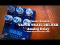 Vapor Trail Deluxe предлагает полностью аналоговую теплоту и характер. В схеме реализованы четыре внушительных чипа задержки, благодаря чему время задержки может достигать 1200 миллисекунд. Эти же микросхемы отвечают за волшебную модуляцию педали, которая может звучать в диапазоне от легкого сияния до безумия вращающегося динамика.