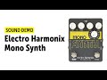 Electro-Harmonix Guitar Mono Synth — монофонический синтезатор, который разработан для прямого включения в цепь гитарных эффектов без дополнительного оборудования в виде специальных звукоснимателей и миди-устройств. Он содержит в себе одиннадцать алгоритмов с различными синтезаторными голосами, которые украсят микс необычными тембрами и новыми звуками.